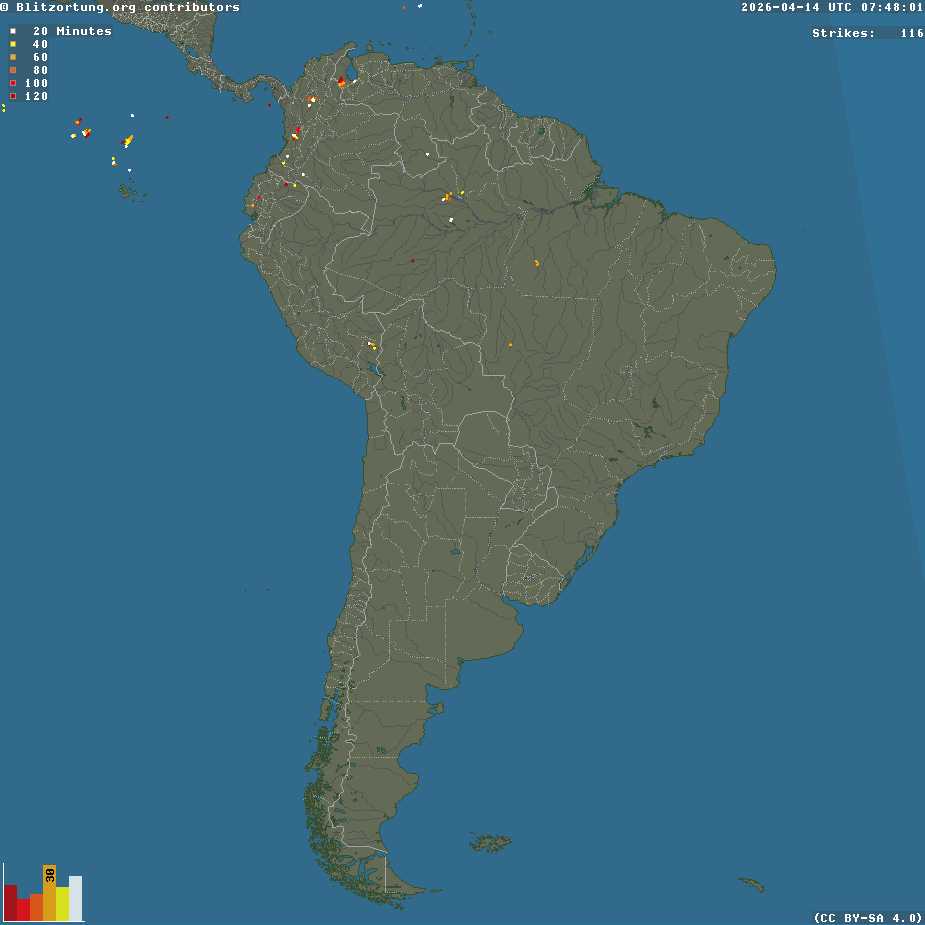 Here you can see a map with reported lightning in your area: Blitzortung.org
